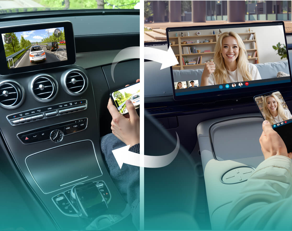 Ihre Familie kann Sendungen ansehen, Musik hören und die Fahrt genießen. Kein „Sind wir schon da?“ mehr.