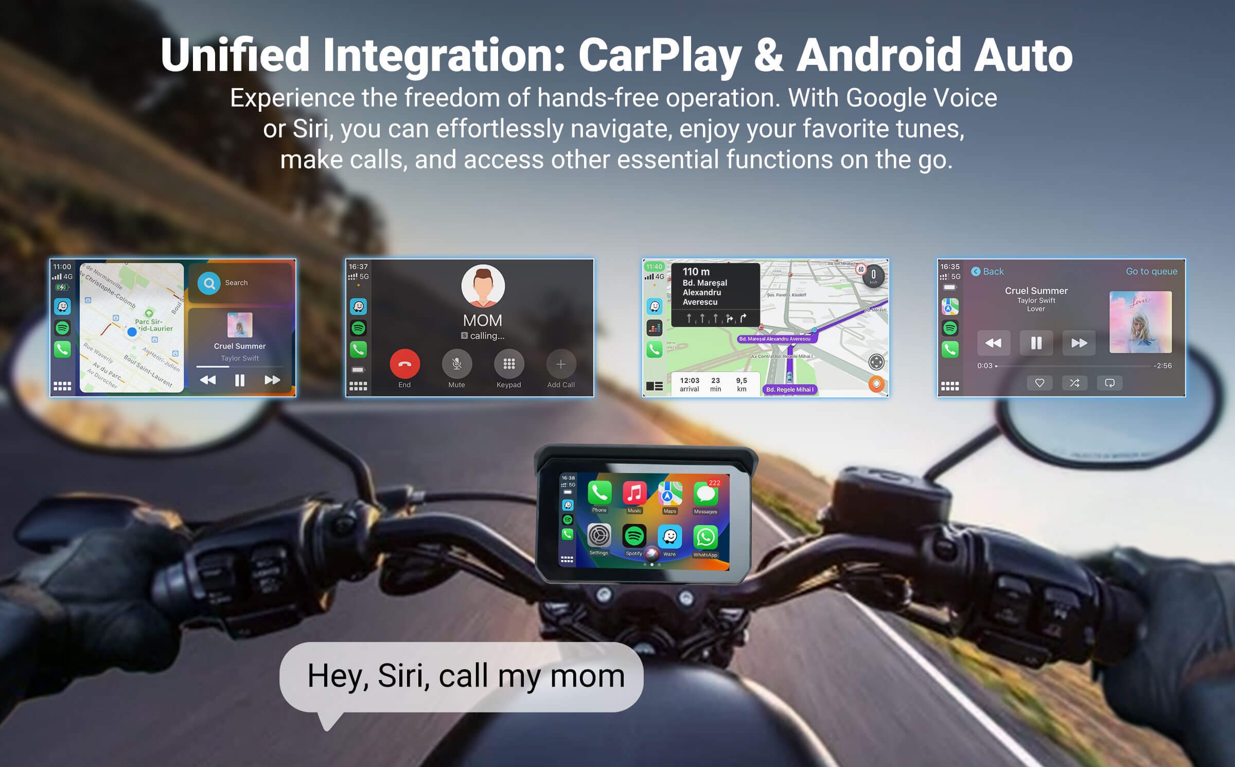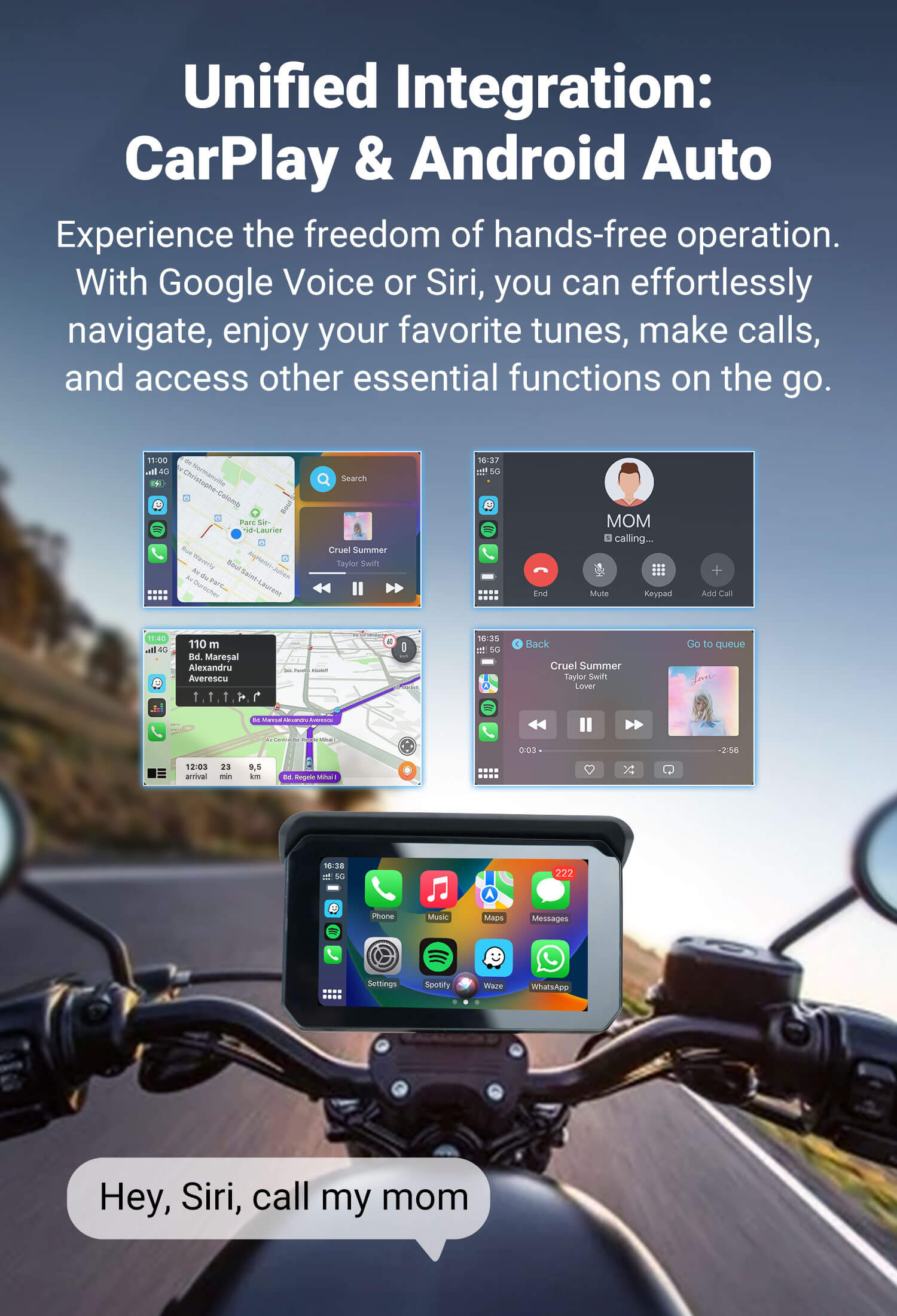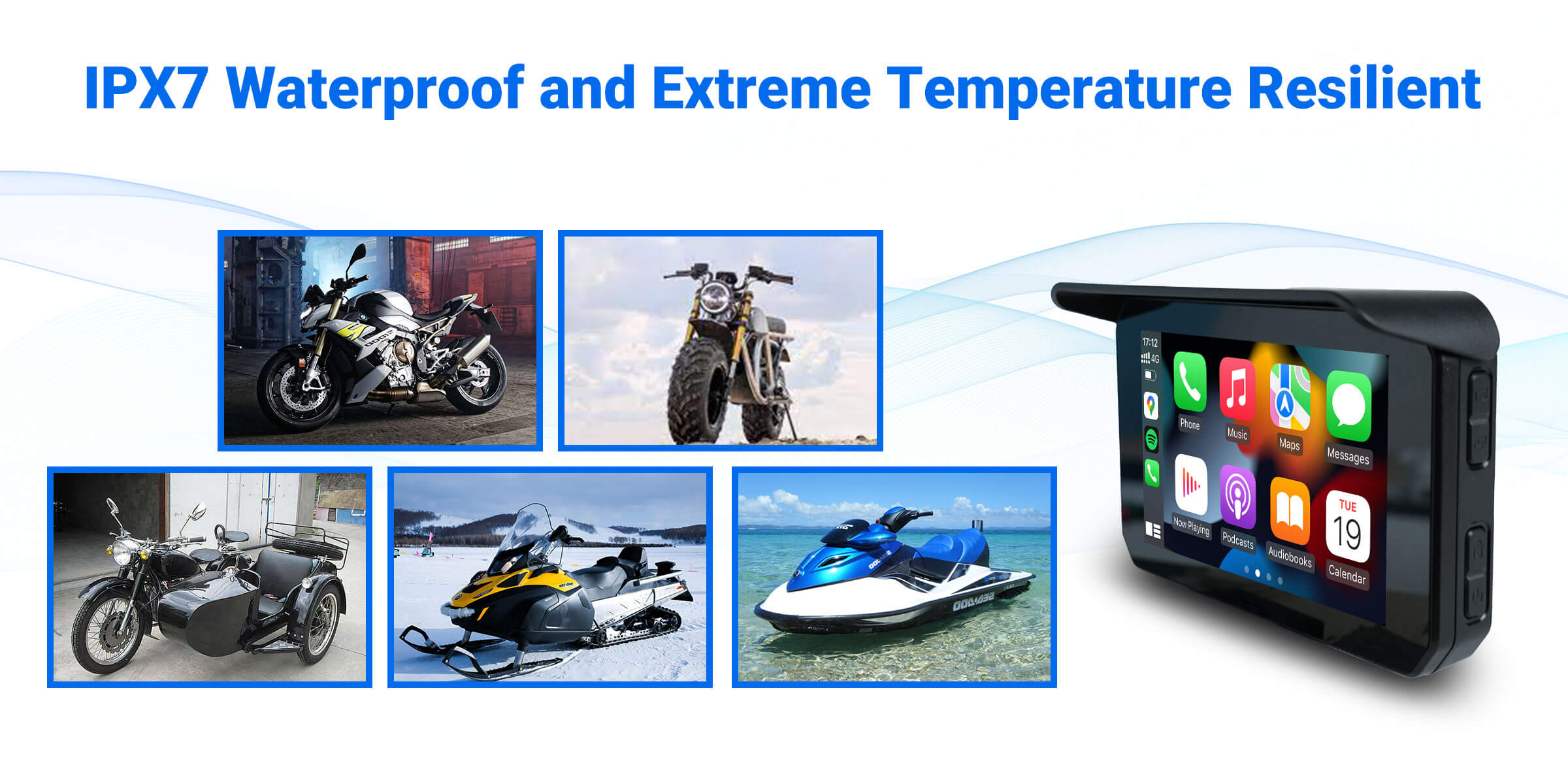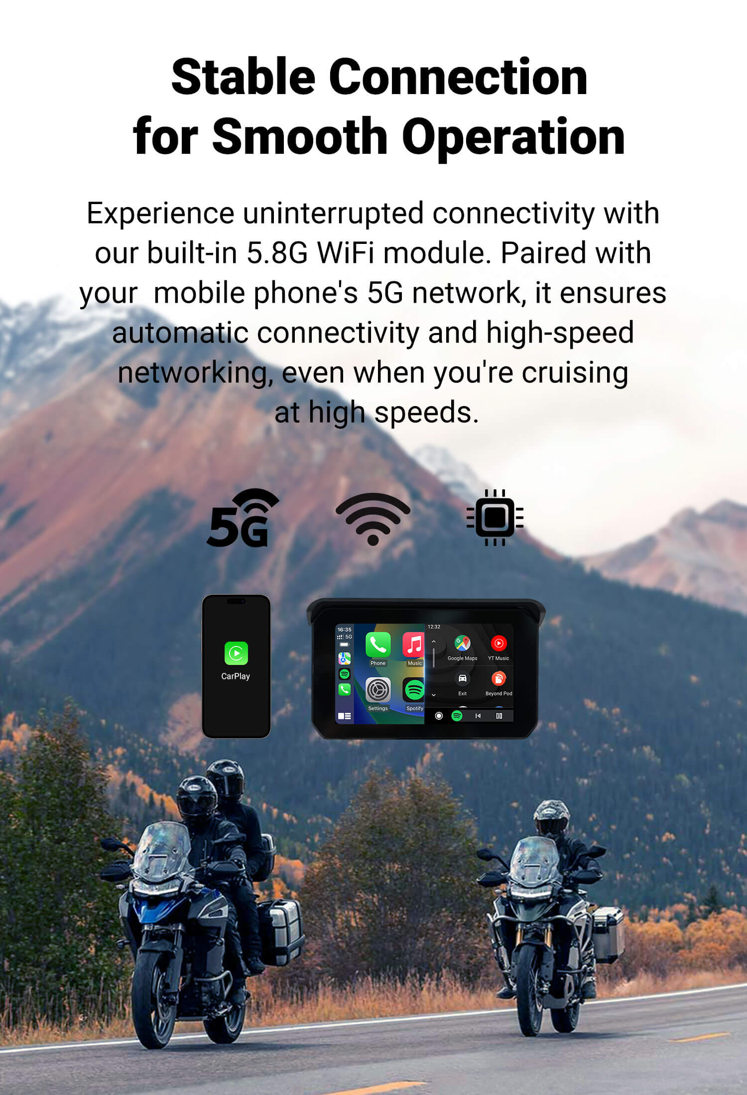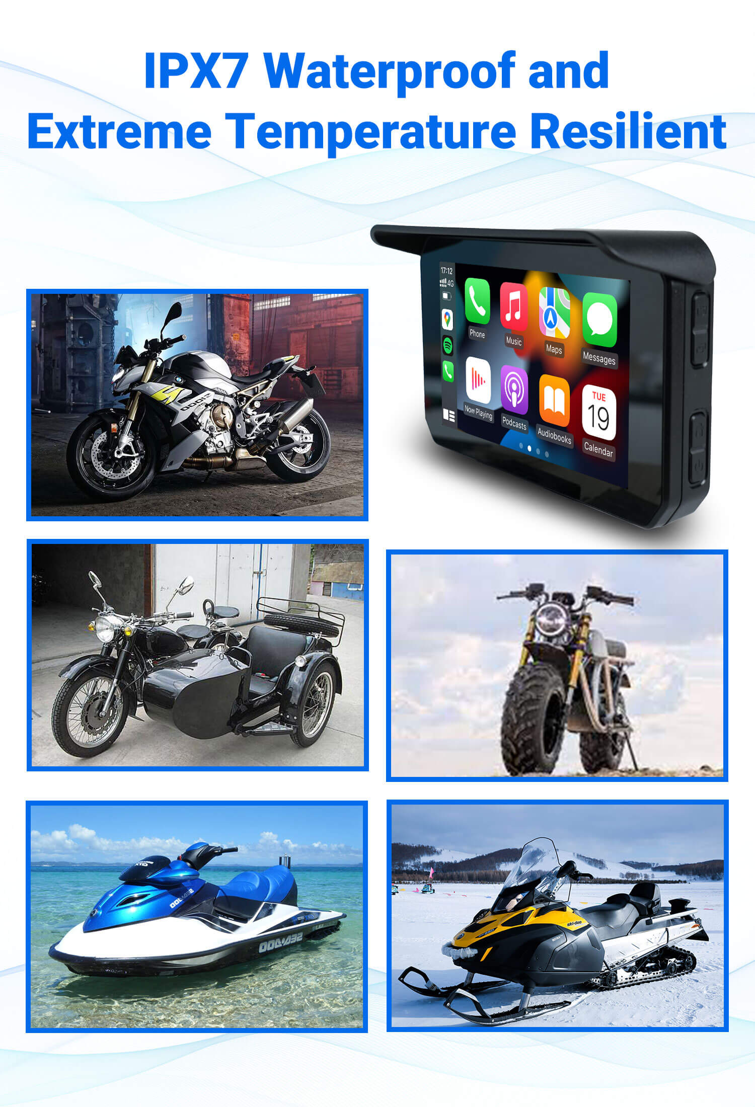 CarPlay Lite C5 SE GPS portable pour moto Écran sans fil CarPlay/Android Auto