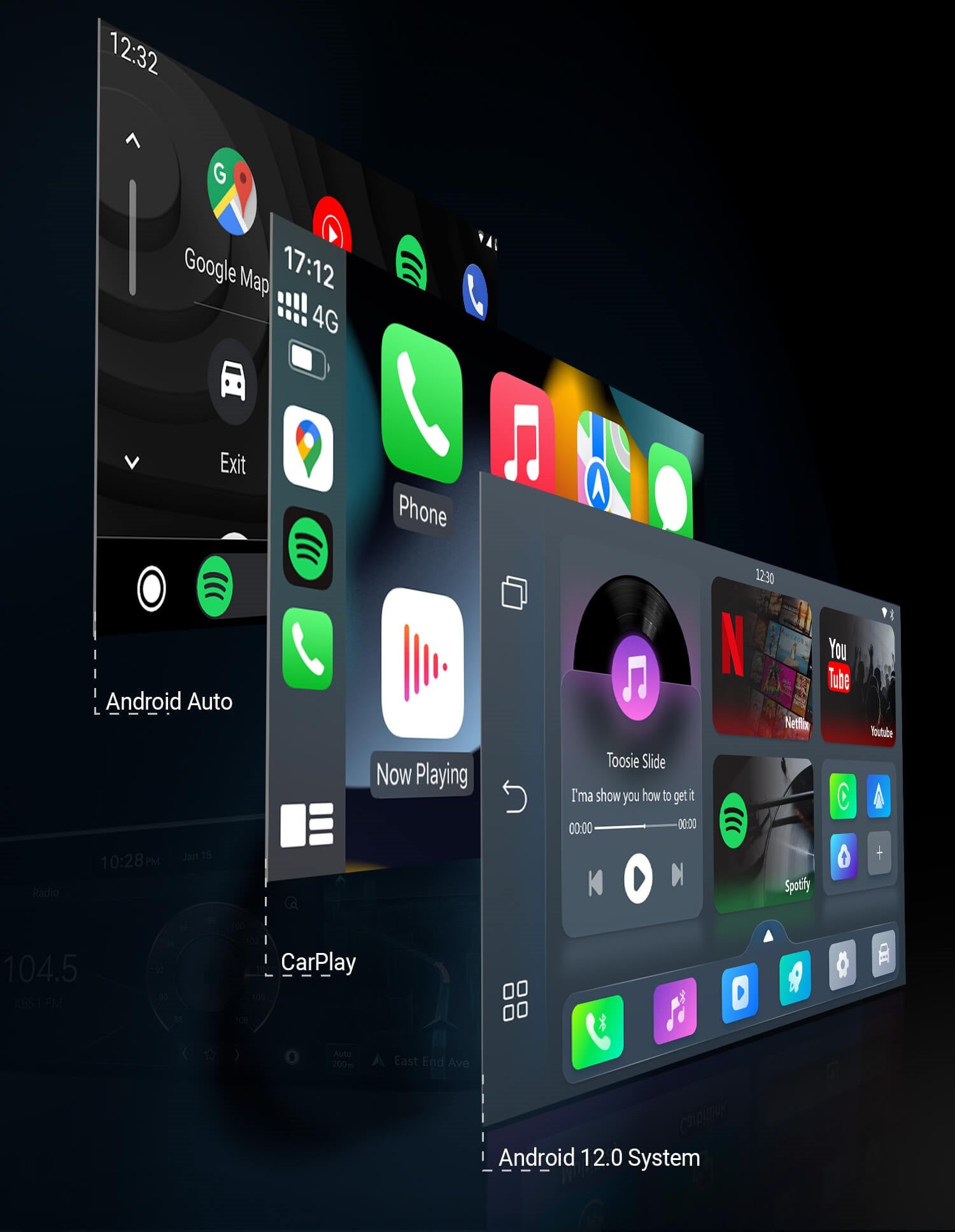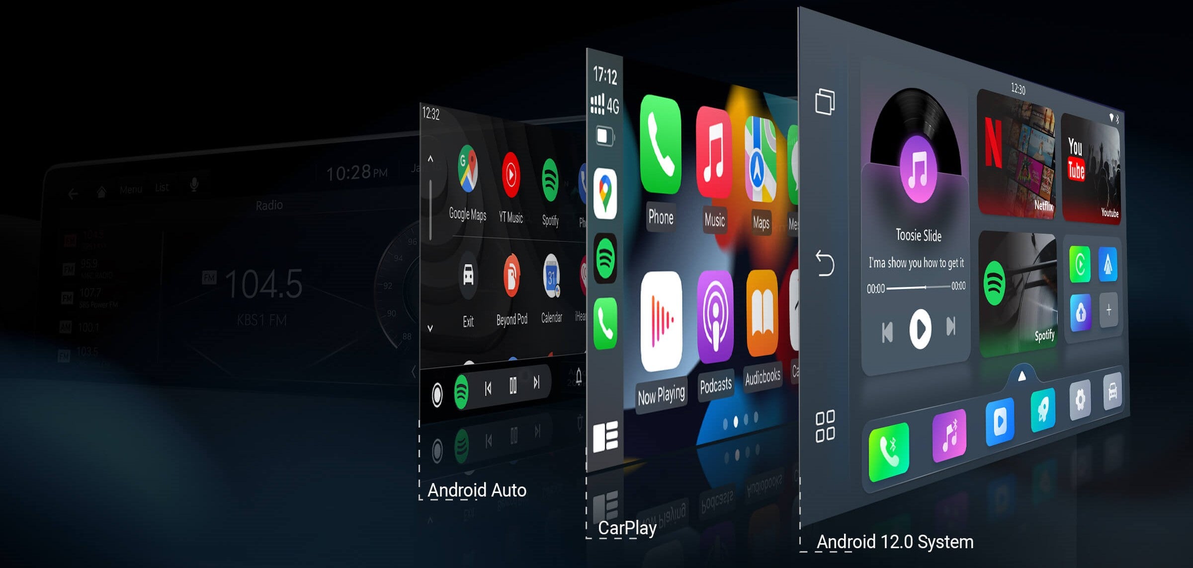 Alterne perfeitamente entre o sistema Android 12.0, CarPlay sem fio,